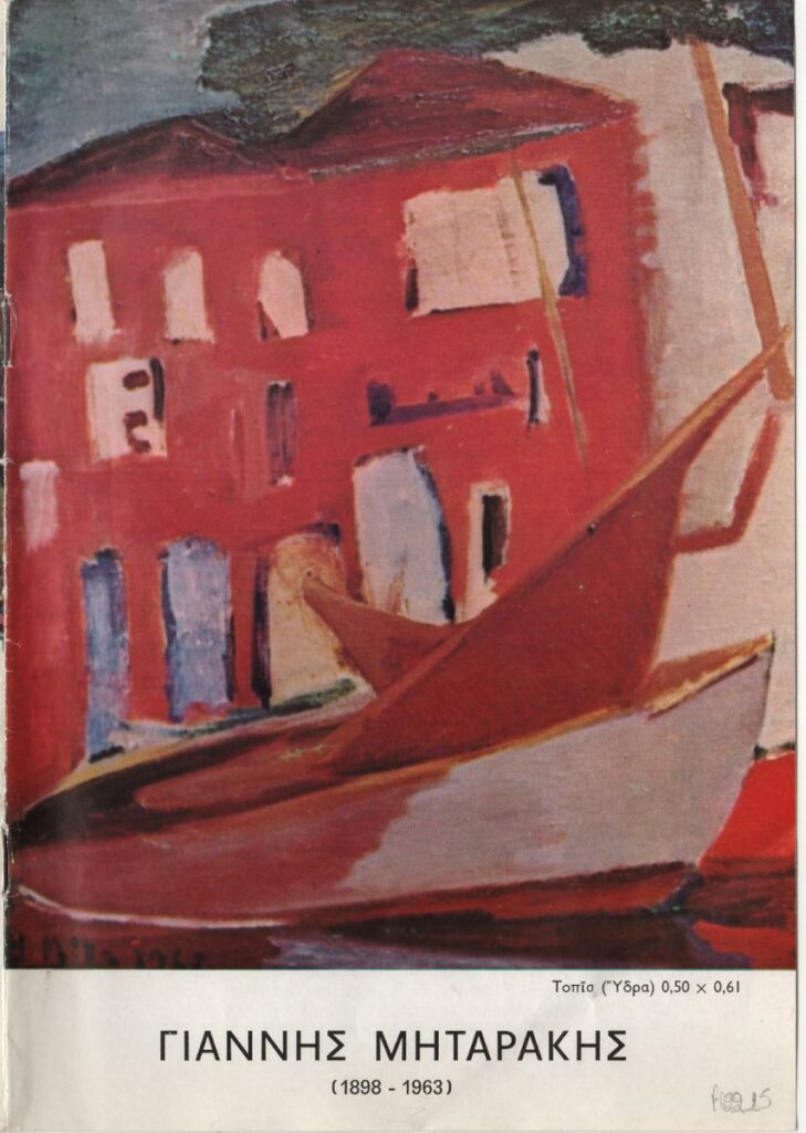 Exhibition catalog for the retrospective painting exhibition of Giannis Mitarakis at the “Ora” Art and Culture Center in Athens. It includes a text about the artist with biographical details, excerpts from critiques in daily and periodical press, a list of solo and group exhibitions, bibliography, and a list of museums and private collections where his works are held. The catalog is illustrated with reproductions of his works.
