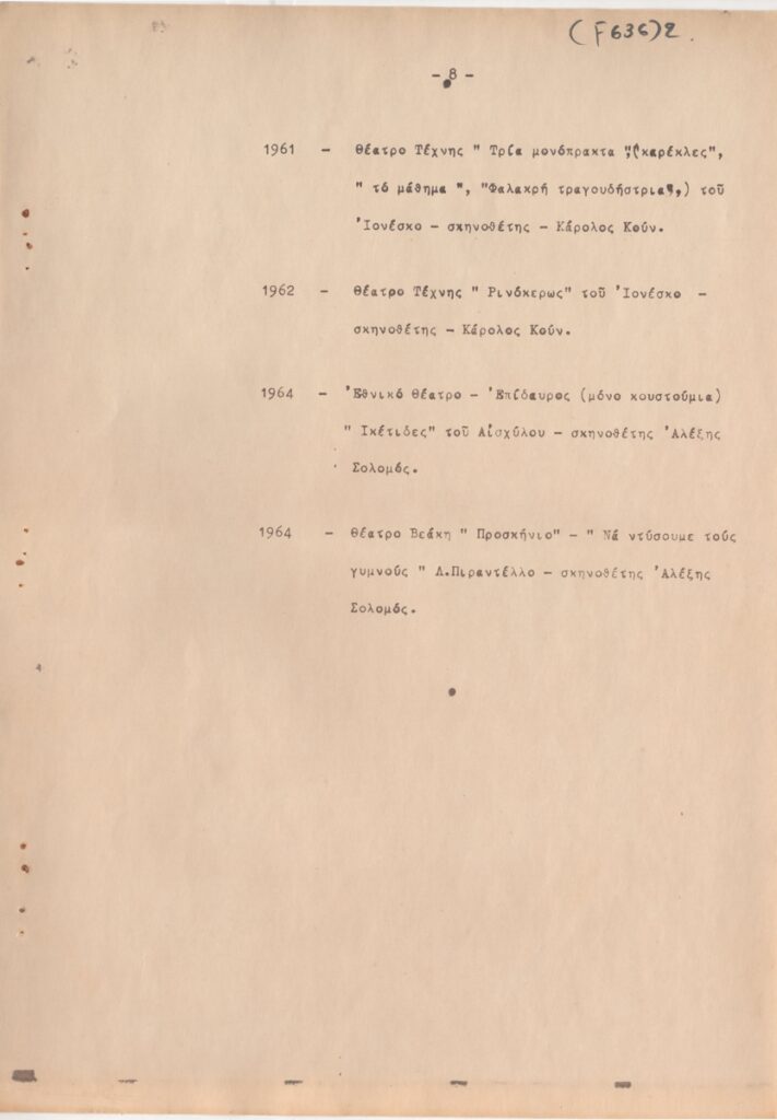 Spiteri-Veropoulou Ioanna (1920 - 2000) ; Touyas Giorgos (1922 - 1994) ; Sotiris Sorogas (1936) ; Moralis Yannis (1916 - 2009) ; Michalis Katzourakis ; Eleni Zongolopoulou (1909 - 1993) ; Simossi Gabriela (1926 - 1999) ; Dimitris Constantinou (1924 - 2010) ; Opy Zouni (1941 - 2008) ; Zongopoulos Giorgos (1903 - 2004) ; (Panagopoulos) Daniel (1924 - 2008) ; Ilias Dekoulakos (1929 - 1998) ; Karas Christos (1930 - 2023) ; Vernadaki Eleni (1933) ; Kampouridis Charis (1950) ; Apergis Antonis (1938 - 2018) ; Panayiotis Gravalos (1933 - 2015) ; Achilleas Droungas (1940) ; Niki Kanagini (1933 - 2008) ; Kostas Karachalios (1923 - 2007) ; Καίτη Αντύπα (1925 - 2006) ; Kessanlis Nikos (1930 - 2004) ; Dimitris Kontos (1931 - 1996) ; Eirini Apergi (1921 - 1994) ; Loucopoulos, Clearchos (1906 - 1995) ; Pastra Nausica (1921 - 2011) ; Κώστας Βαρώτσος (1955)