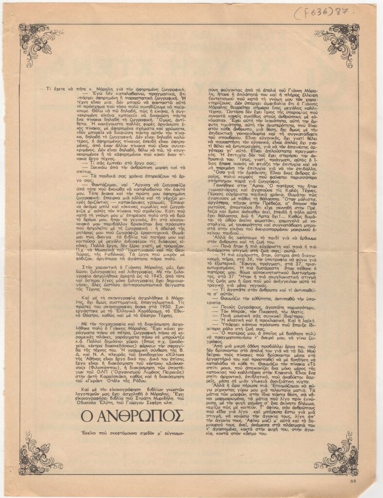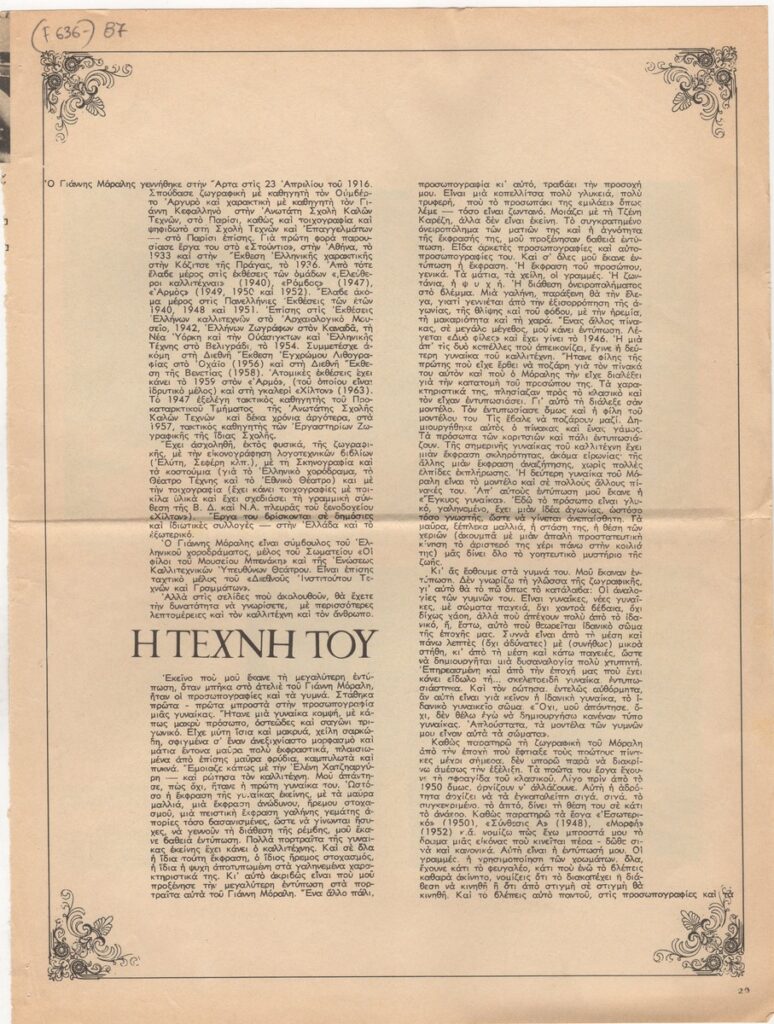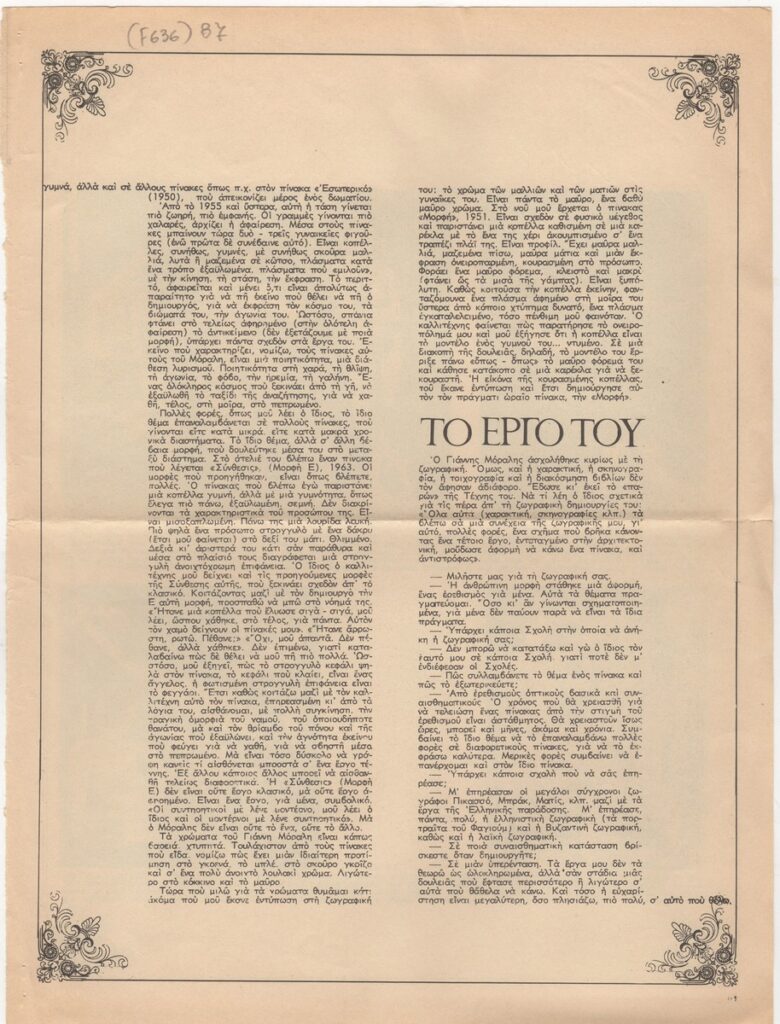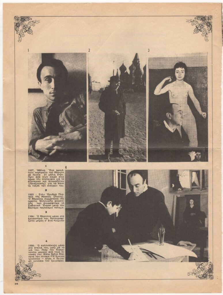 A clipping from the magazine “Ellinida”, dated October 12, 1966, featuring an article about the life and work of Yiannis Moralis. It includes excerpts from his interviews.