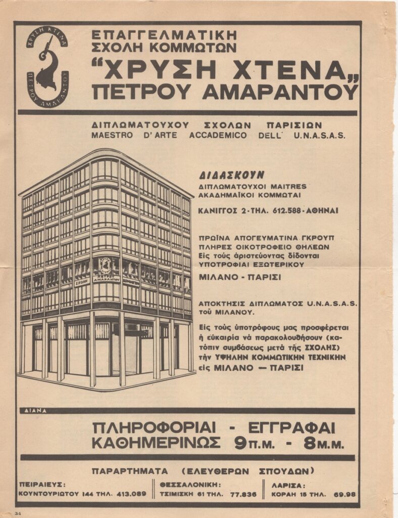 Spiteri-Veropoulou Ioanna (1920 - 2000) ; Giorgos Touyas (1922 - 1994) ; Sotiris Sorogas (1936) ; Moralis Yannis (1916 - 2009) ; Michalis Katzourakis ; Eleni Zongolopoulou (1909 - 1993) ; Simossi Gabriela (1926 - 1999) ; Dimitris Constantinou (1924 - 2010) ; Opy Zouni (1941 - 2008) ; Zongopoulos Giorgos (1903 - 2004) ; (Panagopoulos) Daniel (1924 - 2008) ; Ilias Dekoulakos (1929 - 1998) ; Karas Christos (1930 - 2023) ; Vernadaki Eleni (1933) ; Kampouridis Charis (1950) ; Apergis Antonis (1938 - 2018) ; Panayiotis Gravalos (1933 - 2015) ; Achilleas Droungas (1940) ; Niki Kanagini (1933 - 2008) ; Kostas Karachalios (1923 - 2007) ; Καίτη Αντύπα (1925 - 2006) ; Kessanlis Nikos (1930 - 2004) ; Dimitris Kontos (1931 - 1996) ; Eirini Apergi (1921 - 1994) ; Loucopoulos, Clearchos (1906 - 1995) ; Nausica Pastra (1921 - 2011) ; Κώστας Βαρώτσος (1955)