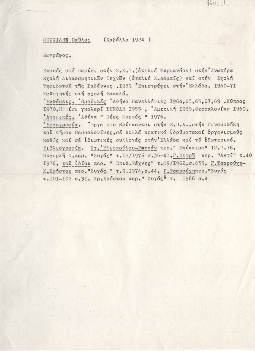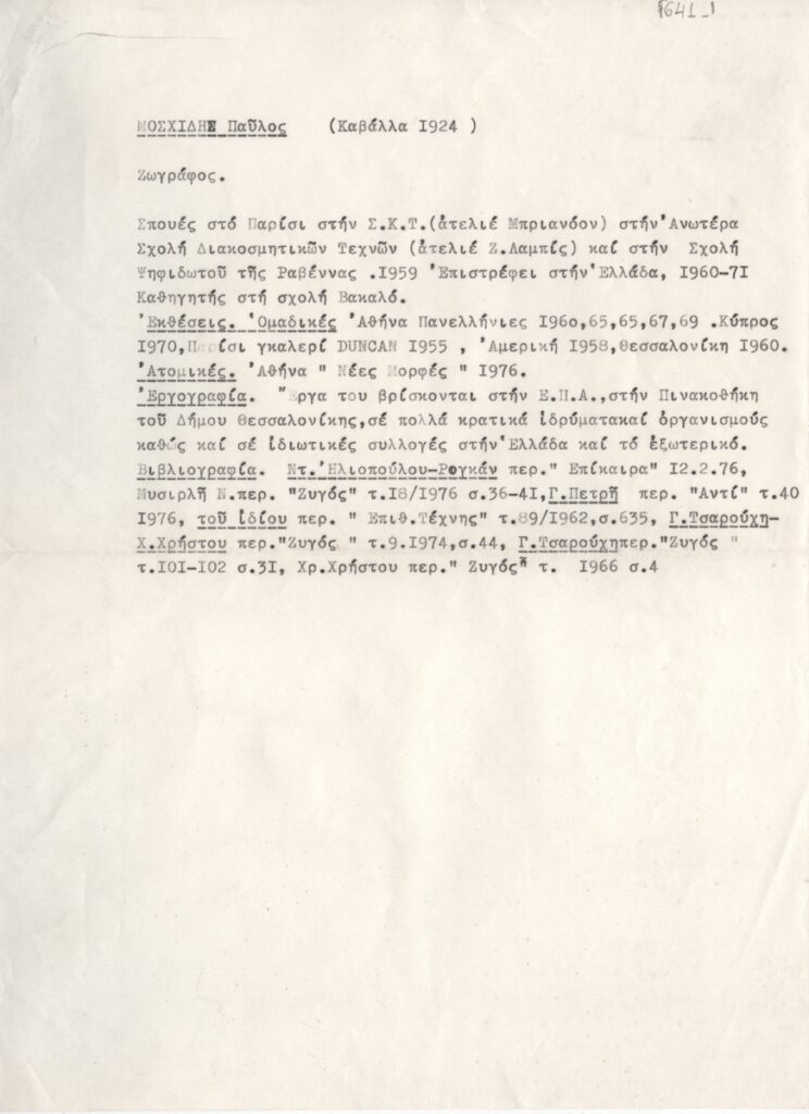 Moschidis Pavlos (1927 - 2004) - Artist