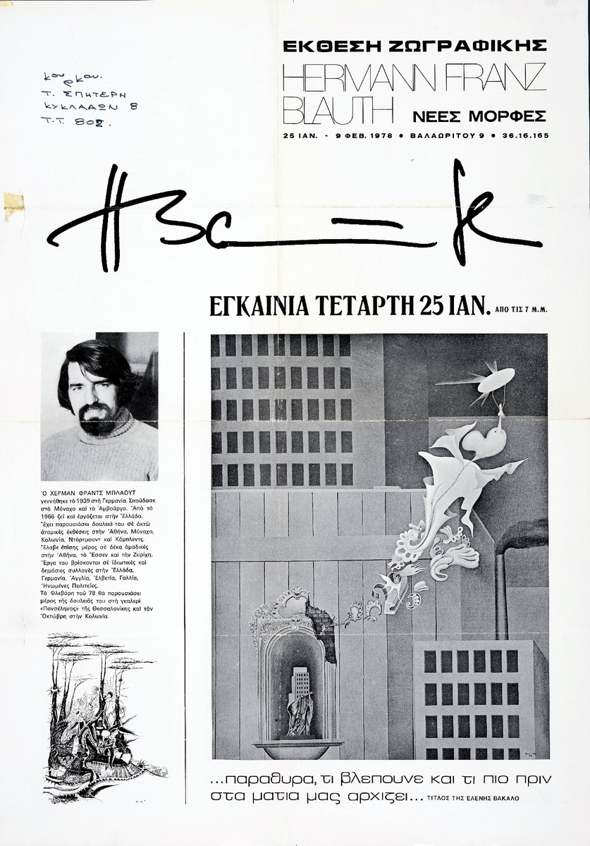Poster for the solo exhibition by the German artist Herman Blaut at the “Nees Morphes’ Gallery in Athens.
