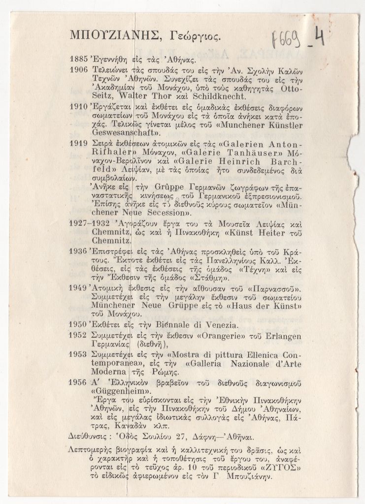 Bouzianis Giorgos (1885 - 1959) - Artist