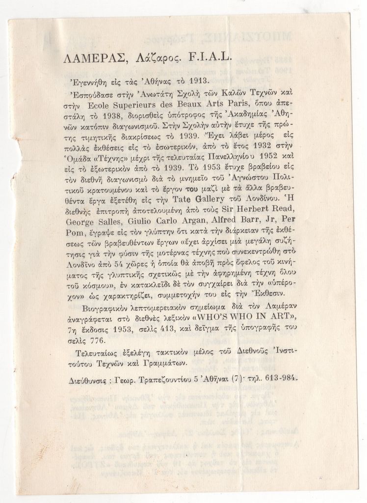Lazaros Lameras (1913 - 1998) - Artist