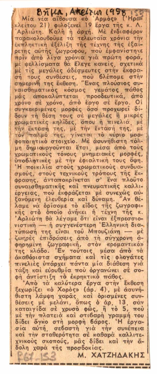 Spiteris Tonis (1910 - 1986) ; Michalis Tompros (1889 - 1974) ; Michel Conil-Lacoste ; Prokopiou Angelos G. (1909 - 1967) ; Moulin Raoul-Jean (1934 - 2014) ; Chatzidakis Manolis (1909 - 1998) ; Hoctin, Luce (1916 - 2015) ; Eleni Vakalo (1921 - 2001) ; Σπύρος Παναγιωτόπουλος (1894 - 1987) ; Nestoras Matsas (1935 - 2012) ; Zongopoulos Giorgos (1903 - 2004) ; Mylonas Alex (1923 - 2016) ; Έλλη Κ. Πολίτη ; Elgar Frank (1899 - 1978) ; Charles Sriber