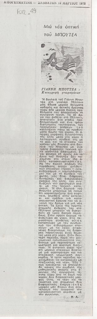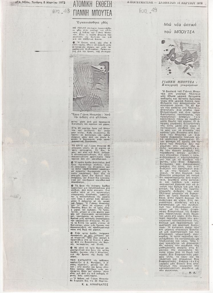 Spiteri-Veropoulou Ioanna (1920 - 2000) ; Andreadi Efi (20th century) ; Touyas Giorgos (1922 - 1994) ; Sotiris Sorogas (1936) ; Diochanti (1945) ; Romanos Chryssa (1931 - 2006) ; Zongopoulos Giorgos (1903 - 2004) ; Achilleas Aperghis (1909 - 1986) ; Xagoraris Pandelis (1929 - 2000) ; Ilias Dekoulakos (1929 - 1998) ; Vernadaki Eleni (1933) ; Niki Kanagini (1933 - 2008) ; Kessanlis Nikos (1930 - 2004) ; Loucopoulos, Clearchos (1906 - 1995) ; Bouteas Yannis (1941 - 2026) ; Bia Davou (1932 - 1996)