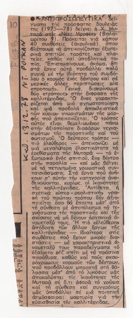 Nikos Engonopoulos (1907 - 1985) ; Semertzidis Valias (1911 - 1983) ; Spiteri-Veropoulou Ioanna (1920 - 2000) ; Vassiliou Spyros (1902 - 1985) ; Hatzikyriakos-Ghika Nikos (1906 - 1994) ; Raftopoulou Bella (1902 - 1992) ; Sikeliotis Giorgos (1917 - 1984) ; Iliopoulou-Rogan Dora (20th century) ; Gaitis Yannis (1923 - 1984) ; Mytaras Dimitris (1934 - 2017) ; Tetsis Panagiotis (1925 - 2016) ; Panayiotis Gravalos (1933 - 2015) ; Konstantinos Grammatopoulos (1916 - 2003) ; Varlamos Giorgos (1922 - 2013) ; Katsoulidis Takis (1933) ; Μάριος Λοβέρδος ; Malamos Kostas (1913) ; Manousakis Giorgos (1914 - 2003) ; Georgios Mavroidis (1912 - 2003) ; Malamou-Mitsea Ioanna (1913 - 2004) ; Preka-Stefanatou Meropi (1934 - 2025) ; Prekas Paris (1926 - 1999) ; Ευάγγελος Τερζόπουλος ; Iris Drakouli (1929)