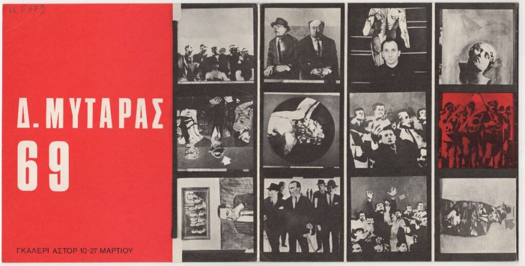 Pamphlet for a solo exhibition by the painter Dimitris Mytara at the “Astor” Art Gallery in Athens. The exhibition is dedicated to Lefteris Rorros.