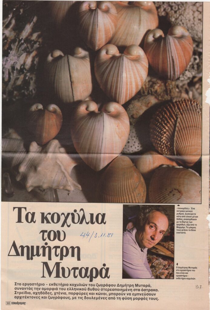 A clipping from the magazine “O Taxydromos”, dated November 3, 1981, featuring an article on the shell collection of the painter Dimitris Mytaras.
