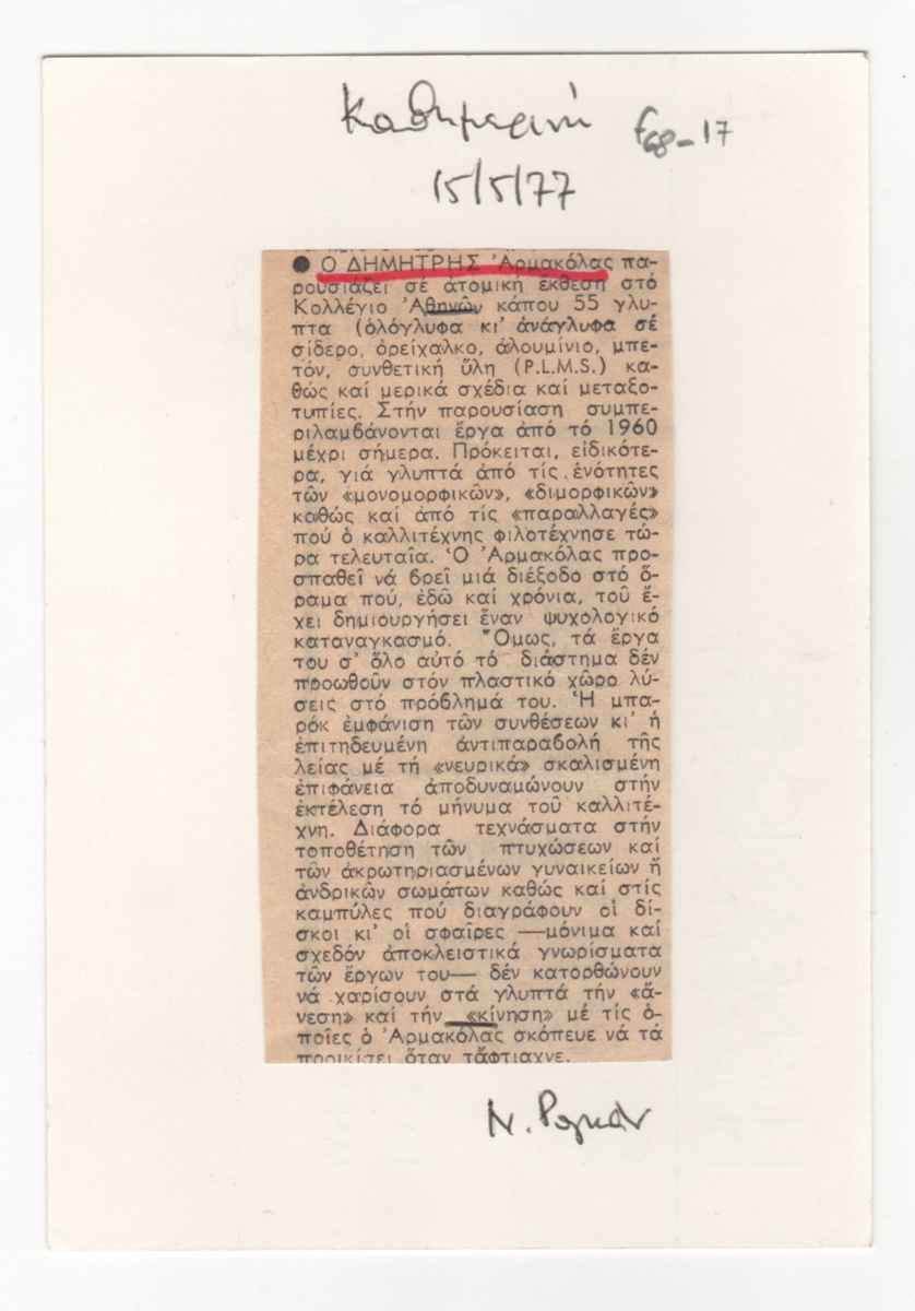 Armakolas Dimitris (1939 - 2009) - Article writer