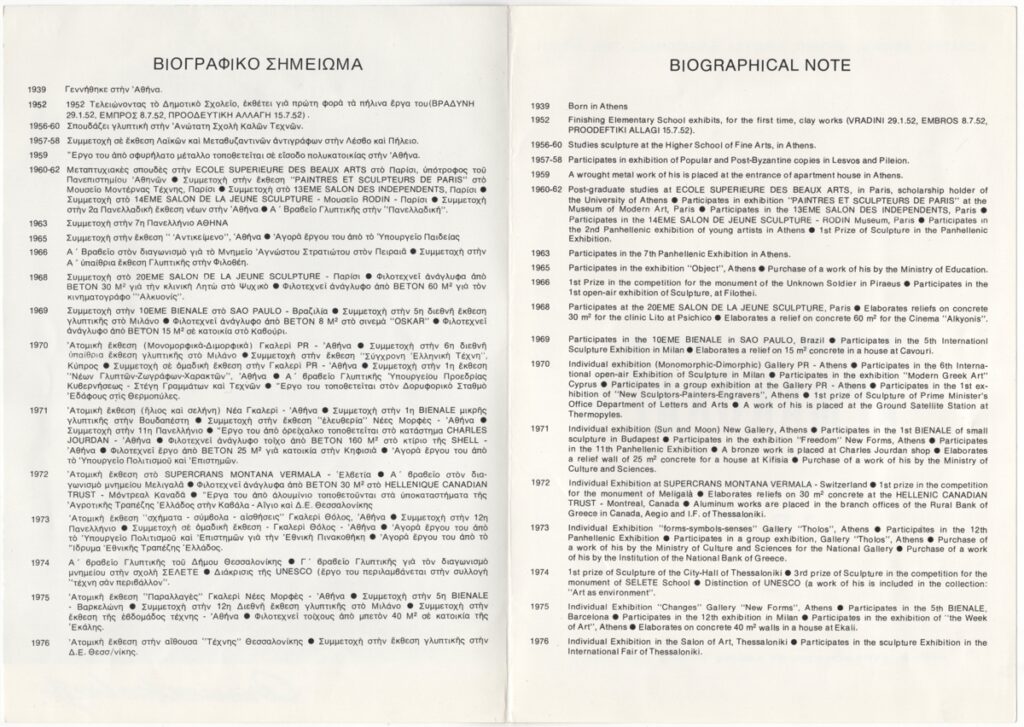 Spiteri-Veropoulou Ioanna (1920 - 2000) ; Kyriakos Rokos (1945) ; Koulentianos Kostas (1918 - 1995) ; Takis (Vassilakis Panayiotis) (1925 - 2019) ; Theodoros Papagiannis (1942) ; Loucopoulos, Clearchos (1906 - 1995) ; Armakolas Dimitris (1939 - 2009) ; Nikolaidis Giorgos (1924 - 2001) ; Fanakidis Apostolos (1945)