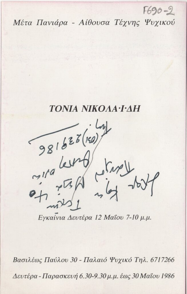 Spiteri-Veropoulou Ioanna (1920 - 2000) ; Diochanti (1945) ; Houtopoulou-Contaratou Sosso (1923 - 1984) ; Christina Zervou (1937 - 1988) ; Beba Angelinou ; Varlamos Giorgos (1922 - 2013) ; Malamos Kostas (1913) ; Nikolaidou-Dentrinou Tonia (1927 - 2011)