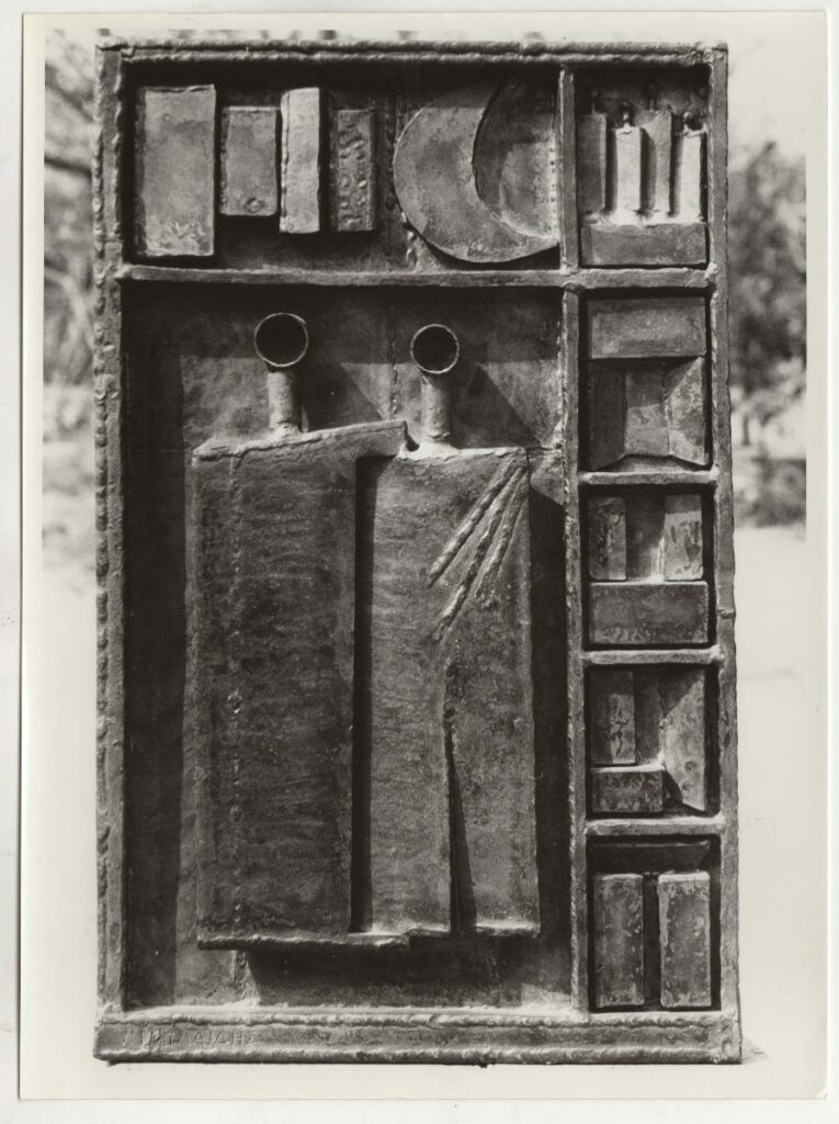 Black and white printed photograph of a work by Georgios Nikolaidis. It bears inscriptions on the back.
