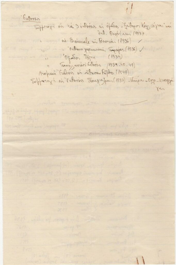 Katraki Vaso (1914 - 1988) ; Spiteri-Veropoulou Ioanna (1920 - 2000) ; Valsamakis Panos (1900 - 1986) ; Vassiliou Spyros (1902 - 1985) ; Eleni Vakalo (1921 - 2001) ; Kalligas Marinos (1906 - 1985) ; Christos Kapralos (1909 - 1993) ; Σπύρος Παναγιωτόπουλος (1894 - 1987) ; Efi Ferentinou (1915 - 1979) ; Tetsis Panagiotis (1925 - 2016) ; Nikos Nikolaou (1909 - 1986) ; Pappas Giannis (1913 - 2005) ; Alexandros Korogiannakis (1906 - 1966) ; Γιώργος Φωκάς