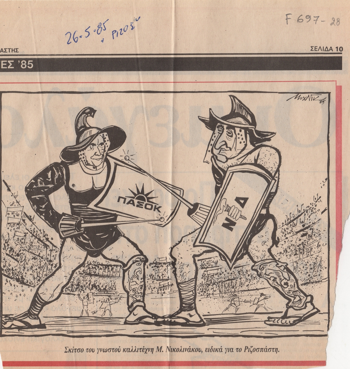 Εφημερίδα "Ριζοσπάστης", 26/05/1985
