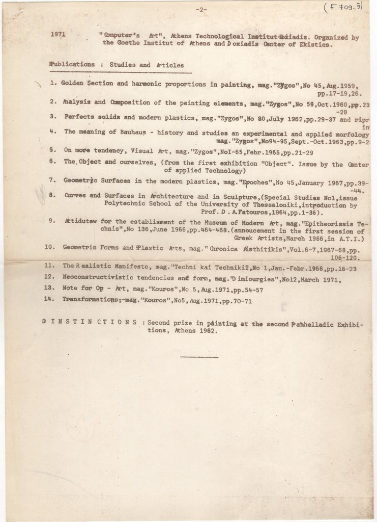 Spiteri-Veropoulou Ioanna (1920 - 2000) ; Andreadi Efi (20th century) ; Touyas Giorgos (1922 - 1994) ; Sotiris Sorogas (1936) ; Diochanti (1945) ; Romanos Chryssa (1931 - 2006) ; Zongopoulos Giorgos (1903 - 2004) ; Achilleas Aperghis (1909 - 1986) ; Xagoraris Pandelis (1929 - 2000) ; Ilias Dekoulakos (1929 - 1998) ; Vernadaki Eleni (1933) ; Niki Kanagini (1933 - 2008) ; Kessanlis Nikos (1930 - 2004) ; Loucopoulos, Clearchos (1906 - 1995) ; Bouteas Yannis (1941 - 2026) ; Bia Davou (1932 - 1996)