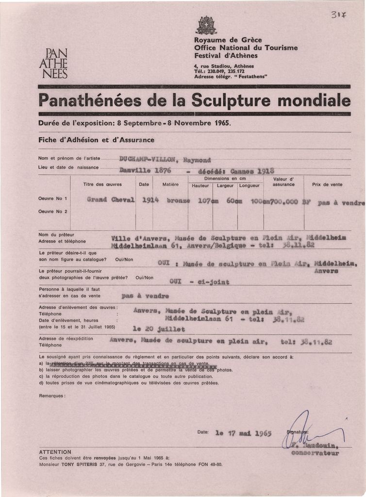 Picasso Pablo (1881 - 1973) ; Spiteri-Veropoulou Ioanna (1920 - 2000) ; Rodin Auguste (1840 - 1917) ; Jean Arp (1886 - 1966) ; Braque Georges (1882 - 1963) ; Léger, Fernand (1881 - 1955) ; Jacques Lipchitz ; Nicolas Schöffer ; Duchamp-Villon Raymond (1876 - 1918) ; Vantongerloo Georges (1886 - 1965) ; Brancusi Constantin (1876 - 1957) ; Alexander Archipenko (1887 - 1964) ; Gabrielle Kueny