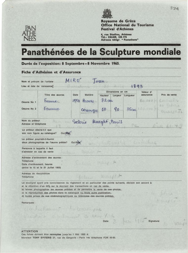 Picasso Pablo (1881 - 1973) ; Miro Joan (1893 - 1983) ; Pierre-Auguste Renoir (1841 - 1919) ; Chalepas Yannoulis (1851 - 1938) ; Dali Savador (1904 - 1989) ; Calder Alexander (1898 - 1976) ; Rodin Auguste (1840 - 1917) ; Moore Henry (1898 - 1986) ; Jean Arp (1886 - 1966) ; Max Ernst (1891 - 1976) ; Henri Matisse (1869 - 1954) ; Braque Georges (1882 - 1963) ; Aristide Maillol (1861 - 1944) ; Giacometti Alberto (1901 - 1966) ; Chagal Marc (1887 - 1985) ; Bourdelle Antoine (1861 - 1929)