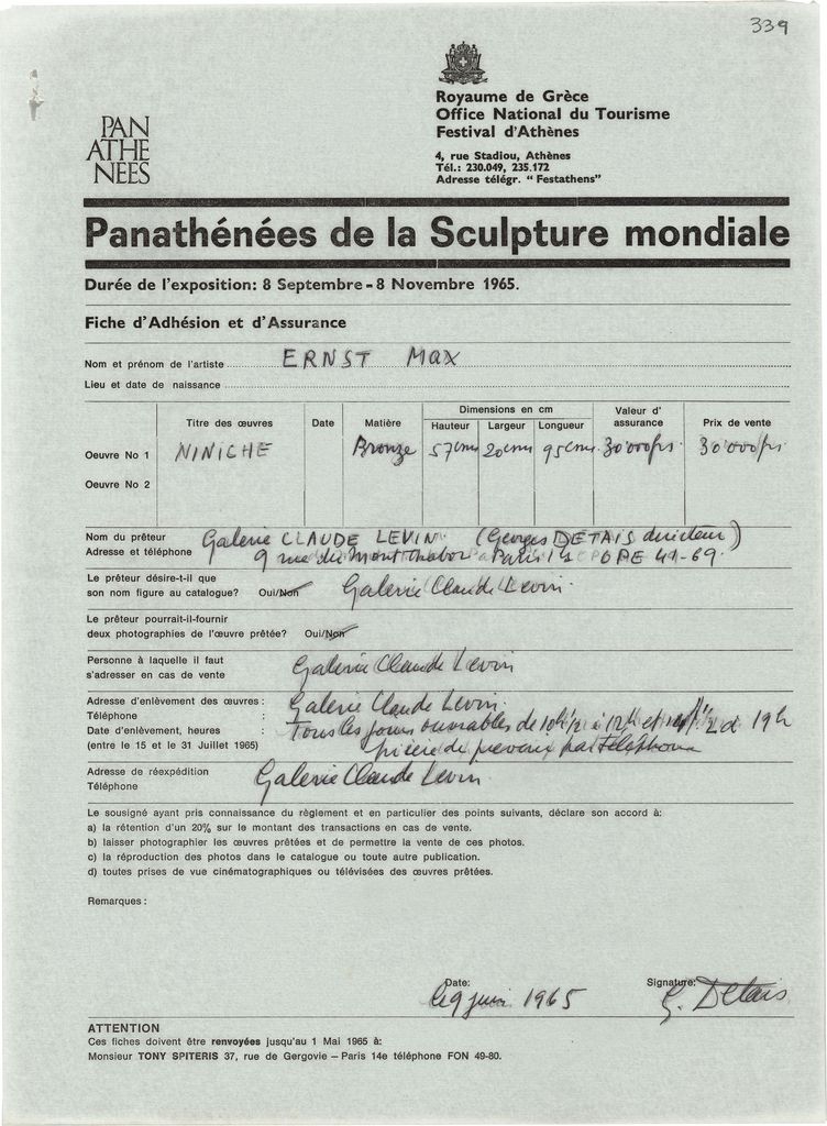 Picasso Pablo (1881 - 1973) ; Andreou Kostas (1917 - 2007) ; Spiteri-Veropoulou Ioanna (1920 - 2000) ; Jean Arp (1886 - 1966) ; Max Ernst (1891 - 1976) ; Emile Gilioli ; Takis (Vassilakis Panayiotis) (1925 - 2019) ; Jacobsen Robert Julius Tommy (1912 - 1993) ; Philolaos (Tloupas) (1923 - 2010)
