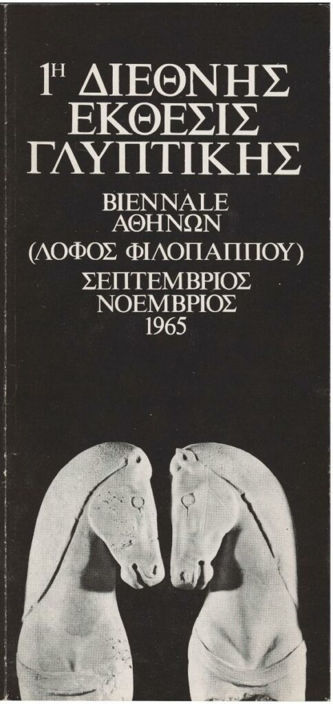 Pamphlet of the 1st World Exhibition 1st World Exhibition “Panathenaea of Contemporary Sculpture” held in Athens. It includes information about presented works of art, participating artists and events organized within the framework of the exhibition.