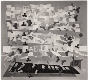 A black-and-white printed photograph from the exhibitions’ preparations.