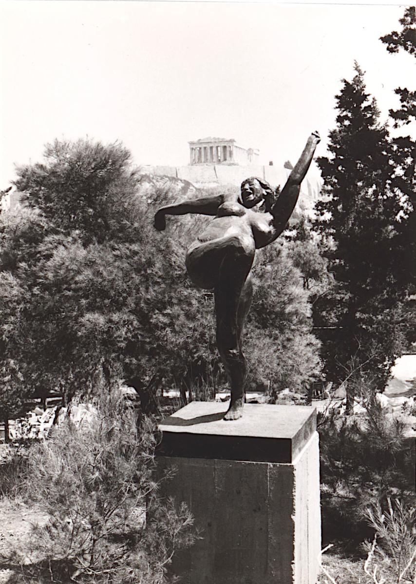 Black-and-white printed photograph of a sculpture by Rik Wouters, which was presented at the 1st World Exhibition “Panathenaea of Contemporary Sculpture” held in Athens.