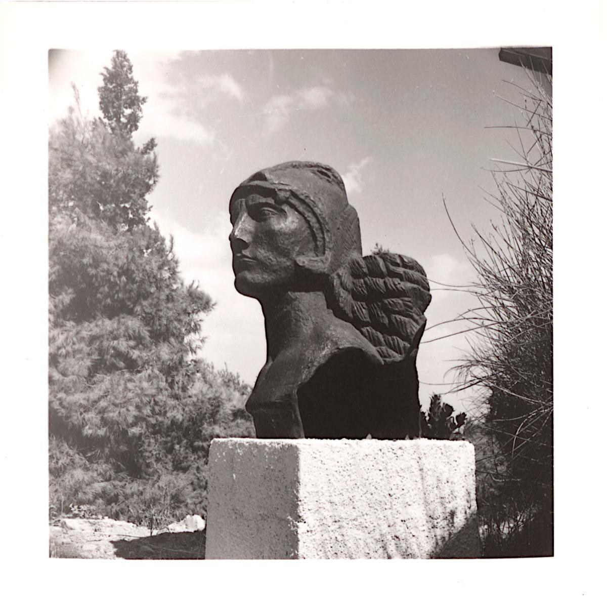 Black-and-white printed photograph of a sculpture by Antoine Bourdelle, which was presented at the 1st World Exhibition “Panathenaea of Contemporary Sculpture” held in Athens.