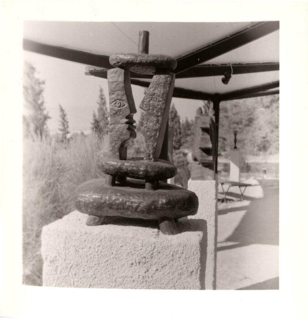 Black-and-white printed photograph of a sculpture by Georges Braque, which was presented at the 1st World Exhibition “Panathenaea of Contemporary Sculpture” held in Athens.