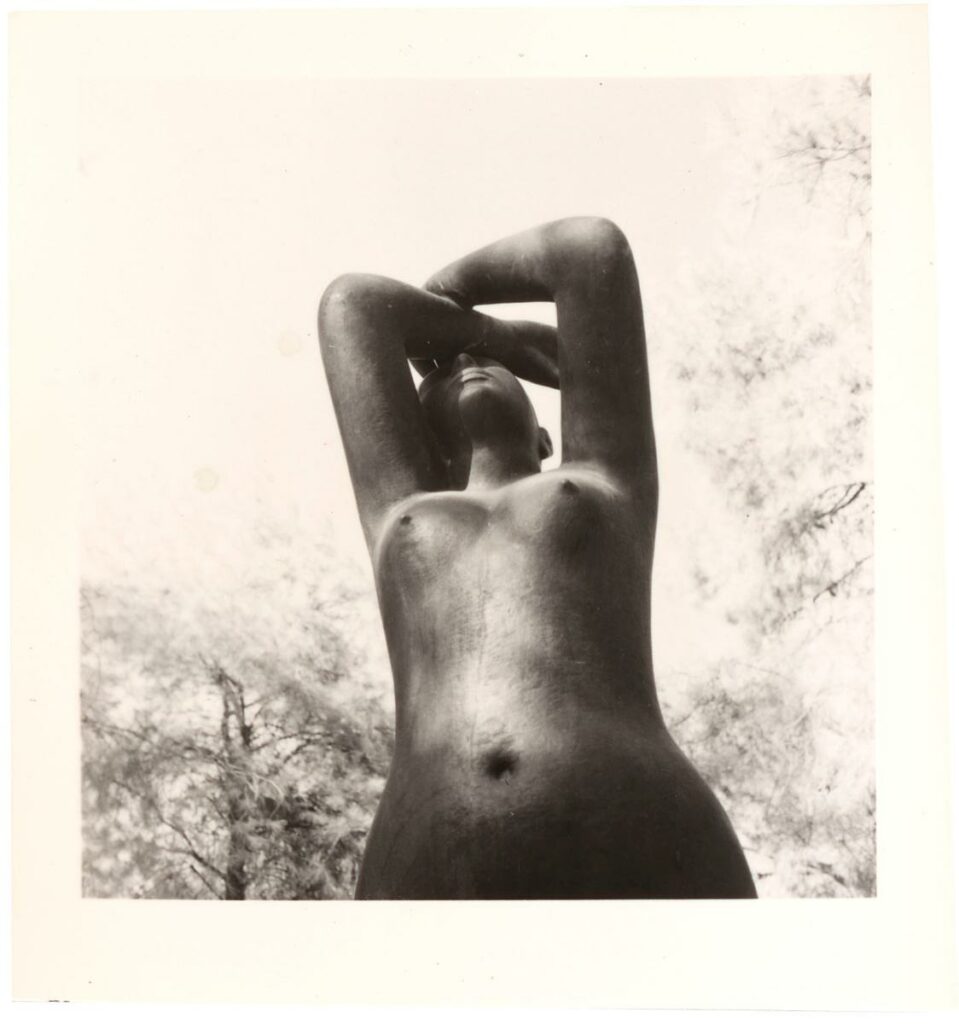 Black-and-white printed photograph of a sculpture by Oskar Jespers, which was presented at the 1st World Exhibition “Panathenaea of Contemporary Sculpture” held in Athens.