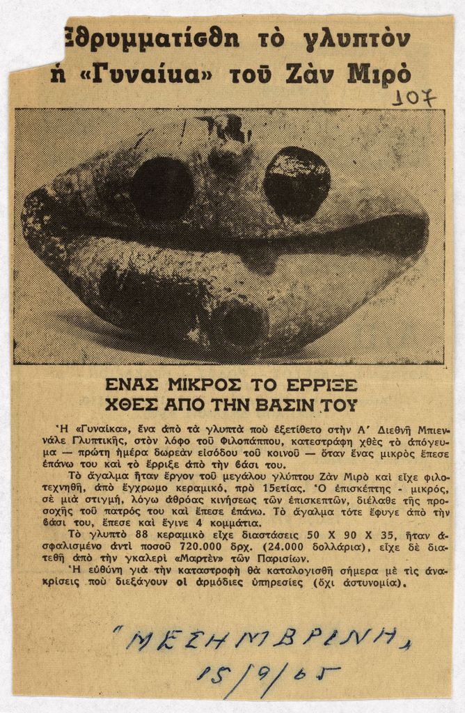 Picasso Pablo (1881 - 1973) ; Miro Joan (1893 - 1983) ; Pierre-Auguste Renoir (1841 - 1919) ; Chalepas Yannoulis (1851 - 1938) ; Dali Savador (1904 - 1989) ; Calder Alexander (1898 - 1976) ; Rodin Auguste (1840 - 1917) ; Moore Henry (1898 - 1986) ; Jean Arp (1886 - 1966) ; Max Ernst (1891 - 1976) ; Henri Matisse (1869 - 1954) ; Braque Georges (1882 - 1963) ; Aristide Maillol (1861 - 1944) ; Giacometti Alberto (1901 - 1966) ; Chagal Marc (1887 - 1985) ; Bourdelle Antoine (1861 - 1929)