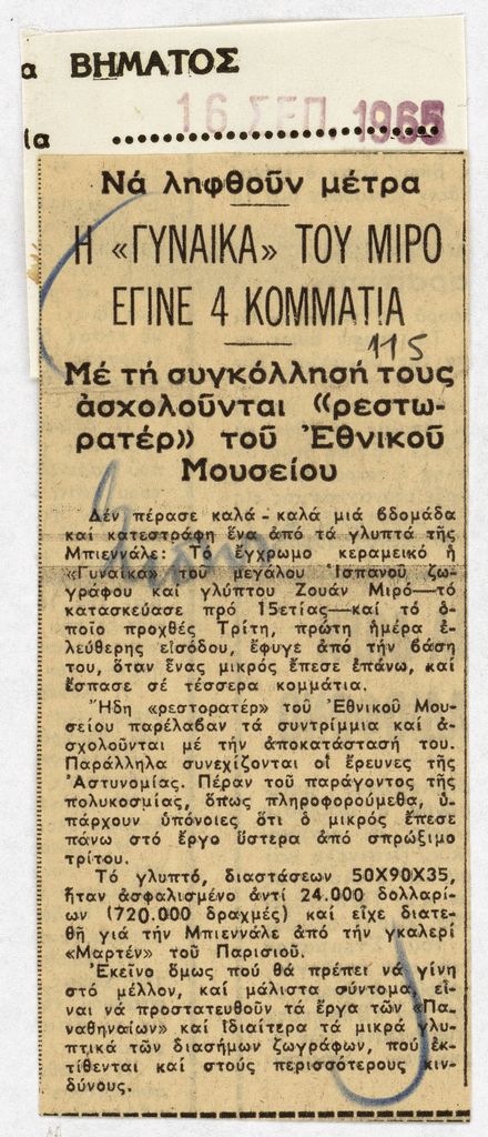 Picasso Pablo (1881 - 1973) ; Miro Joan (1893 - 1983) ; Pierre-Auguste Renoir (1841 - 1919) ; Chalepas Yannoulis (1851 - 1938) ; Dali Savador (1904 - 1989) ; Calder Alexander (1898 - 1976) ; Rodin Auguste (1840 - 1917) ; Moore Henry (1898 - 1986) ; Jean Arp (1886 - 1966) ; Max Ernst (1891 - 1976) ; Henri Matisse (1869 - 1954) ; Braque Georges (1882 - 1963) ; Aristide Maillol (1861 - 1944) ; Giacometti Alberto (1901 - 1966) ; Chagal Marc (1887 - 1985) ; Bourdelle Antoine (1861 - 1929)
