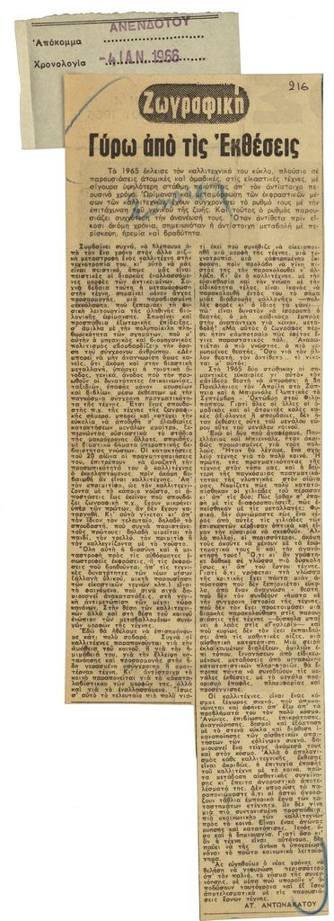 Spiteri-Veropoulou Ioanna (1920 - 2000) ; Vassiliou Spyros (1902 - 1985) ; Orestis Kanellis (1910 - 1979) ; Maggiorou Loukia (1914 - 2008) ; Tassos (Anastasios Alevizos) (1914 - 1985) ; Mitarakis Yannis (1898 - 1963) ; Asteriadis Aghinor (1898 - 1977) ; Sikeliotis Giorgos (1917 - 1984) ; Antonakatou Diana (1922 - 2011) ; Eleftheriadis Takis (1911 - 1987) ; Frantziskakis Errikos (1908 - 1958) ; Sochos Antonios (1888 - 1975) ; Bouzianis Giorgos (1885 - 1959) ; Karantinos Sokratis (1906 - 1979) ; Zachariou Fotis (1909 - 2001) ; Μαρία Αναγνωστοπούλου-Βρανίκα (1890 - 1971) ; Karagatsi Niki (1914 - 1986) ; Papanoutsou Ioulia (1900 - 1973)