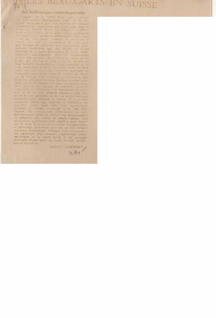 Andreou Kostas (1917 - 2007) ; Fatouros Dimitris (1928 - 2020) ; Spiteri-Veropoulou Ioanna (1920 - 2000) ; Eugène Delacroix (1798 - 1863) ; Touyas Giorgos (1922 - 1994) ; Simossi Gabriela (1926 - 1999) ; Tsoclis Costas (1930) ; Sklavos Yerassimos (1927 - 1967) ; Άγγελος Αγγελόπουλος (1904 - 1995) ; Kontopoulos Alekos (1904 - 1975) ; Mylonas Alex (1923 - 2016) ; Vyzantios Ntikos (1924 - 2007) ; Berto Lardera ; Valsamis Kostas (1908 - 2003) ; Gaitis Yannis (1923 - 1984) ; Le Corbusier (1887 - 1965) ; Georges Mathieu (1921 - 2012) ; Theodoros (Papadimitriou) (1931 - 2018) ; Takis (Vassilakis Panayiotis) (1925 - 2019) ; Victor Vasarely ; Philolaos (Tloupas) (1923 - 2010) ; Kessanlis Nikos (1930 - 2004) ; Kriezi Tita (1930 - 2021) ; Lyberaki Aglaia (1923 - 1985) ; Maltezos Yannis (1915 - 1987) ; Molfesis Iasson (1925 - 2009) ; Paniaras Kostas (1934 - 2014) ; Karras Kostas (1936 - 2012) ; Γιώργος Βαφειάδης