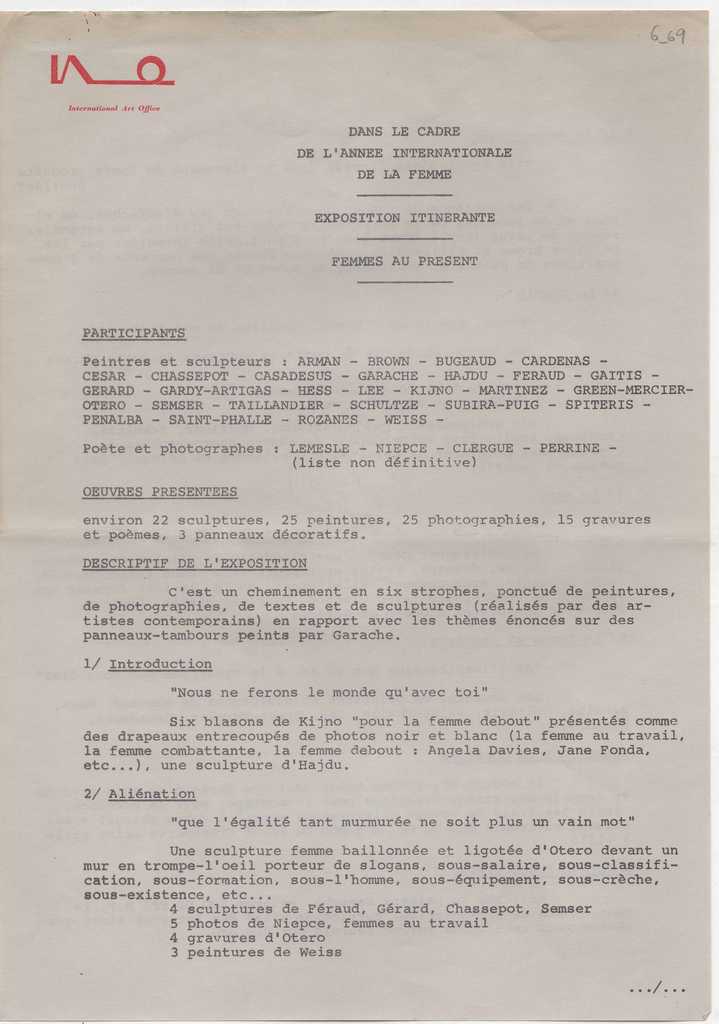 Andreou Kostas (1917 - 2007) ; Fatouros Dimitris (1928 - 2020) ; Spiteri-Veropoulou Ioanna (1920 - 2000) ; Eugène Delacroix (1798 - 1863) ; Touyas Giorgos (1922 - 1994) ; Simossi Gabriela (1926 - 1999) ; Tsoclis Costas (1930) ; Sklavos Yerassimos (1927 - 1967) ; Άγγελος Αγγελόπουλος (1904 - 1995) ; Kontopoulos Alekos (1904 - 1975) ; Mylonas Alex (1923 - 2016) ; Vyzantios Ntikos (1924 - 2007) ; Berto Lardera ; Valsamis Kostas (1908 - 2003) ; Gaitis Yannis (1923 - 1984) ; Le Corbusier (1887 - 1965) ; Georges Mathieu (1921 - 2012) ; Theodoros (Papadimitriou) (1931 - 2018) ; Takis (Vassilakis Panayiotis) (1925 - 2019) ; Victor Vasarely ; Philolaos (Tloupas) (1923 - 2010) ; Kessanlis Nikos (1930 - 2004) ; Kriezi Tita (1930 - 2021) ; Lyberaki Aglaia (1923 - 1985) ; Maltezos Yannis (1915 - 1987) ; Molfesis Iasson (1925 - 2009) ; Paniaras Kostas (1934 - 2014) ; Karras Kostas (1936 - 2012) ; Γιώργος Βαφειάδης