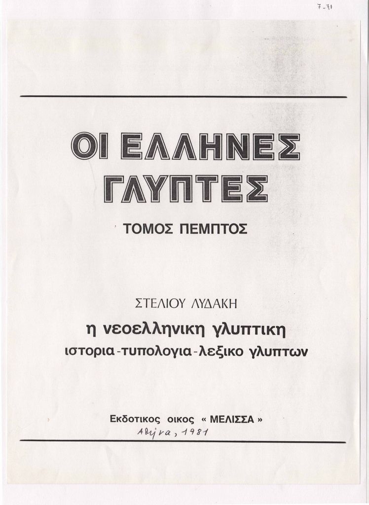 Λυδάκης, Στέλιος, "Οι Έλληνες Γλύπτες", εκδ. Μέλισσα, Αθήνα, 1981