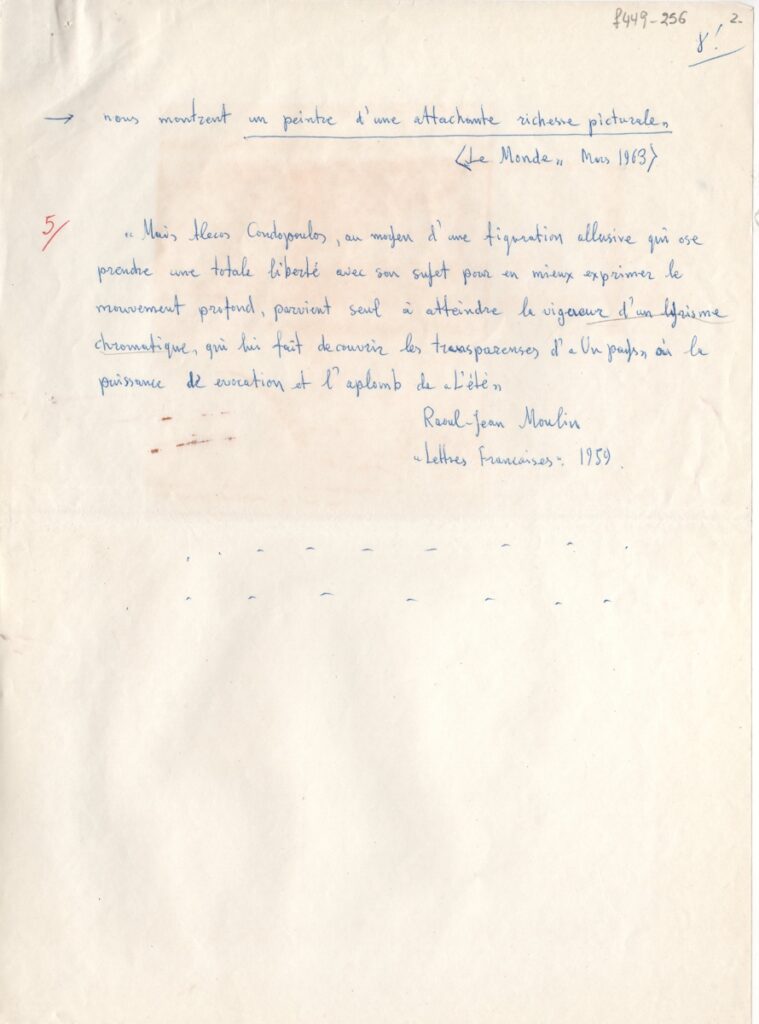 Spiteris Tonis (1910 - 1986) ; Michalis Tompros (1889 - 1974) ; Michel Conil-Lacoste ; Prokopiou Angelos G. (1909 - 1967) ; Moulin Raoul-Jean (1934 - 2014) ; Chatzidakis Manolis (1909 - 1998) ; Hoctin, Luce (1916 - 2015) ; Eleni Vakalo (1921 - 2001) ; Σπύρος Παναγιωτόπουλος (1894 - 1987) ; Nestoras Matsas (1935 - 2012) ; Zongopoulos Giorgos (1903 - 2004) ; Mylonas Alex (1923 - 2016) ; Έλλη Κ. Πολίτη ; Elgar Frank (1899 - 1978) ; Charles Sriber