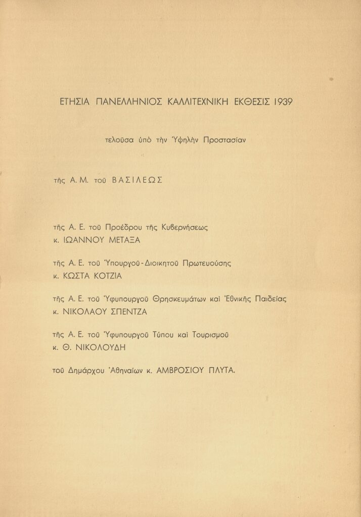 Annual Panhellenic Art Exhibition 1939 – Catalogue of the exhibited works