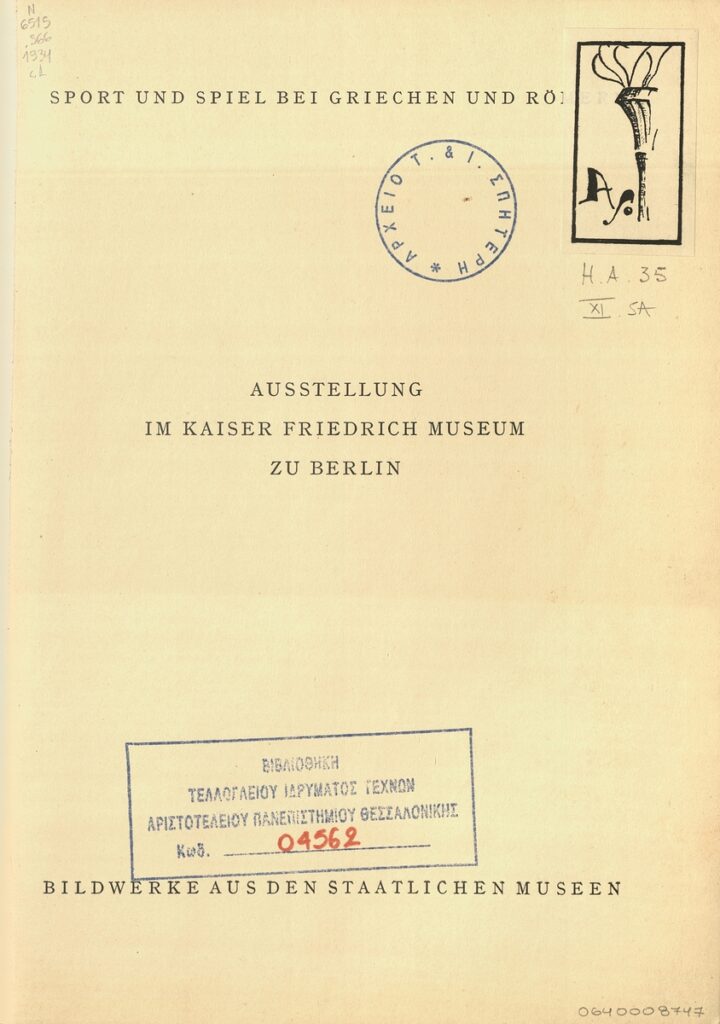 Sports and Games among the Greeks and Romans. Sculptures from the State Museums in Berlin
