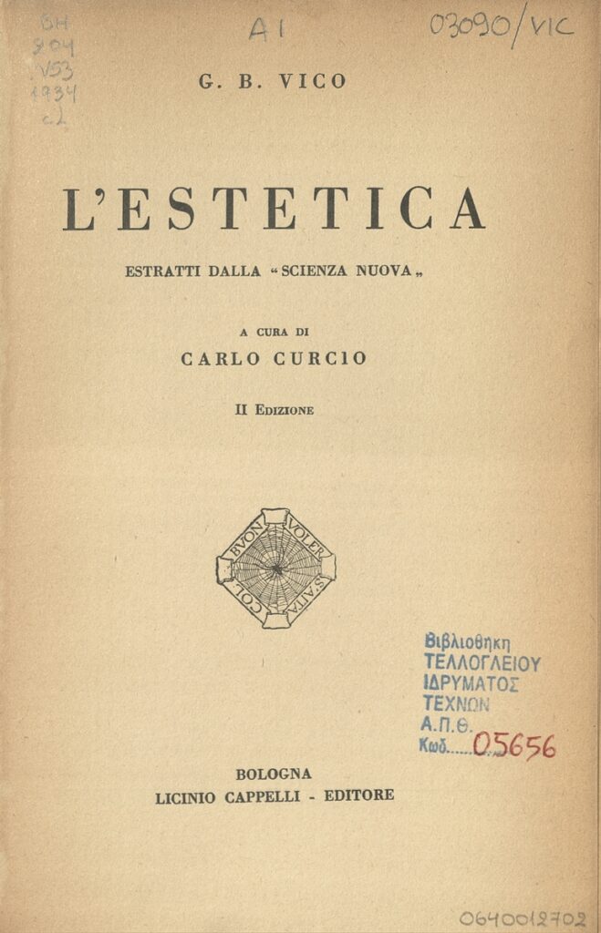 Aesthetics : Extracts from the “Scienza Nuova”