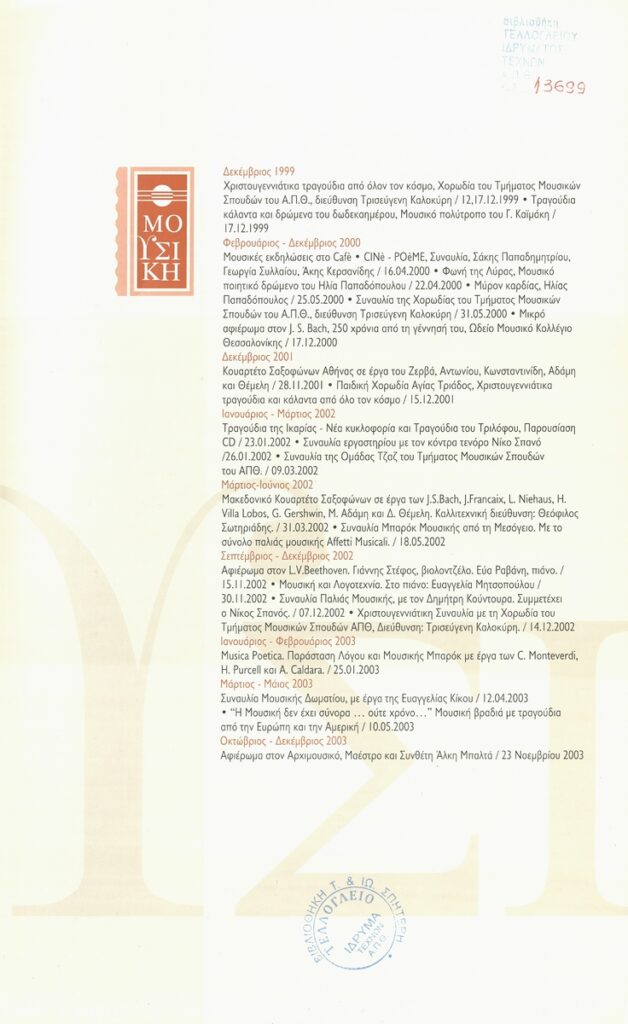 Teloglion Foundation of Arts A.U.Th. Events 1999-2003