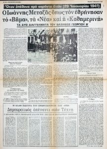 Ioannis Metaxas mourned by “Vima”, “Nea” and “Kathimerini”