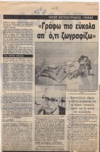 Τάσσος Α. (1914 - 1985) ; Δημήτριος Γαλάνης (1879 - 1966) ; Ντίκος Βυζάντιος (1924 - 2007) ; Νίκος-Γαβριήλ Πεντζίκης (1908 - 1993) ; Βέρα Χουτζούμη (1920 - 2007) ; Αντώνης Κιτσίκης ; Γεώργιος Παραλής (1908 - 1975) ; Πολύκλειτος Ρέγκος (1903 - 1984)