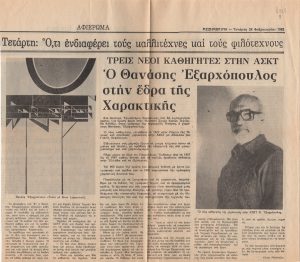 Ioannou Giorgos (1926 - 2017) ; Giorgos Touyas (1922 - 1994) ; Sotiris Sorogas (1936) ; Venetoulias Loukas (1930 - 1984) ; Sachinis Nikos (1924 - 1989) ; Μανώλης Καλλιγιάννης ; Migadis Yannis (1926 - 2017) ; Giorgos Skoteinos (1937 - 2022) ; Φώτης Σαρρής ; Vakirtzis Giorgos (1923 - 1988) ; Markellos Thodoros (1925 - 2015) ; Gaitis Yannis (1923 - 1984) ; Mytaras Dimitris (1934 - 2017) ; Xagoraris Pandelis (1929 - 2000) ; Karas Christos (1930 - 2023) ; Touzenis Giorgos (1957) ; Marios Vatzias (1926 - 2008) ; Giorgos Vogiatzis (1935 - 1993) ; Βασίλης Κυπραίος (1936 - 2021) ; Votsis Stelios (1922 - 2012) ; Michalis Georgas (1947) ; Georgiadis, Nicholas (1925 - 2001) ; Tetsis Panagiotis (1925 - 2016) ; Nella Golanta (1941 - 2023) ; Daniel Gounaridis (1934) ; Achilleas Droungas (1940) ; Πέτρος Ζουμπουλάκης (1937) ; Niki Kanagini (1933 - 2008) ; Κώστας Ηλιάκης ; Theofylaktopoulos Makis (1939 - 2023) ; Lefteris Kanakakis (1934 - 1985) ; Vlassis Kaniaris (1928 - 2011) ; Karavouzis Sarantis (1938 - 2011) ; Katsoulidis Takis (1933) ; Vasilis Kelaidis (1938) ; Kleopa Thaleia (1928) ; Dimitris Kontos (1931 - 1996) ; Nikos Kouroussis (1937) ; Logothetis Stathis (1925 - 1997) ; Θεόδωρος Μανωλίδης (1940) ; Stelios Mavromatis (1930 - 2020) ; Yannis Michailidis (1940 - 2021) ; Michas Yannis (1938 - 2008) ; Moschidis Pavlos (1927 - 2004) ; Botsoglou Chronis (1941 - 2022) ; Maria Spentza (1925 - 2011) ; Natsi Kleio (1929 - 2024) ; Bia Davou (1932 - 1996) ; Θωμάς Παπαδοπεράκης (1943) ; Piladakis Manolis (1927) ; Prekas Paris (1926 - 1999) ; Rorros Lefteris (1939 - 1967) ; Δημήτρης Σακελλίων (1947) ; Sideris Takis (1929) ; Skiadaresi Zoi (1934 - 2014) ; Stephopoulos Thanasis (1928 - 2012)