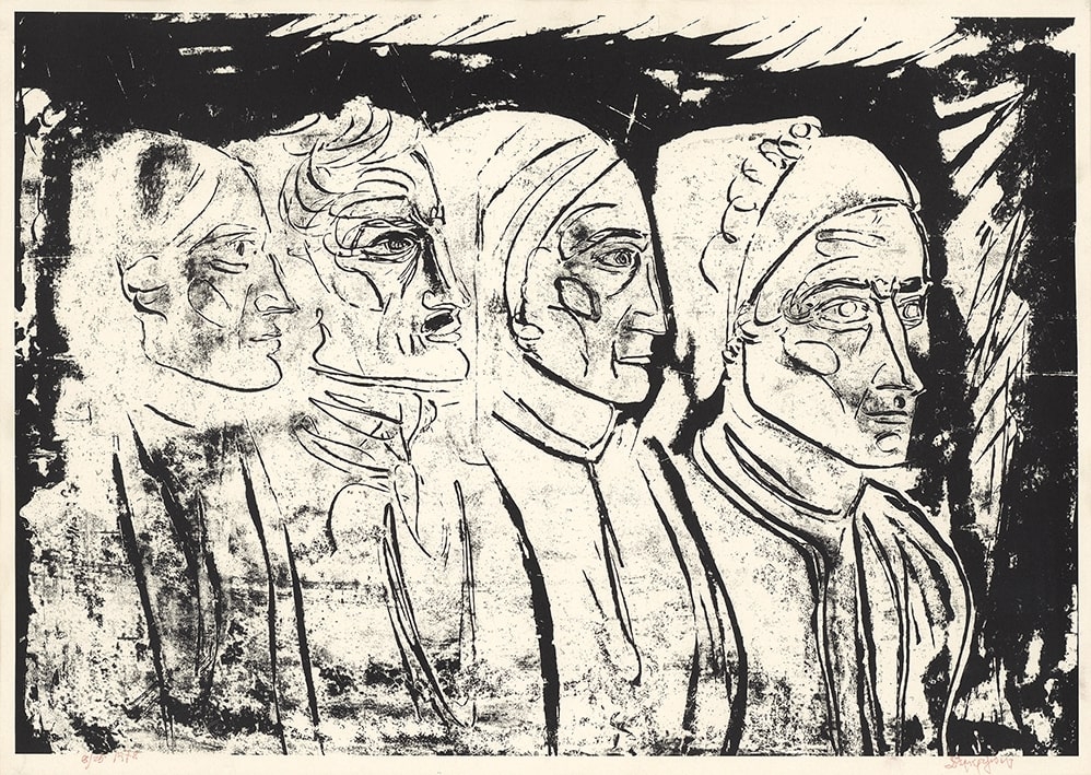 Βάλιας Σεμερτζίδης (1911 - 1983) ; Τάσσος Α. (1914 - 1985) ; Γιώργος Σικελιώτης (1917 - 1984) ; Παναγιώτης Τέτσης (1925 - 2016) ; Κωνσταντίνος Γραμματόπουλος (1916 - 2003) ; Γιώργος Βαρλάμος (1922 - 2013)