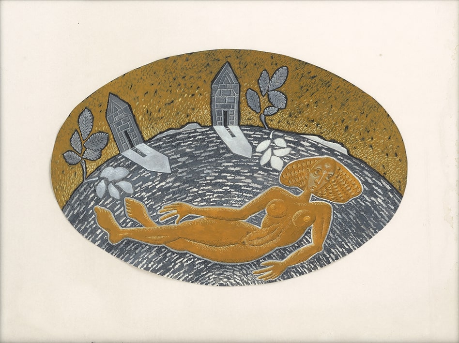 Ξαπλωμένη γυναίκα σε οβάλ πλαίσιο