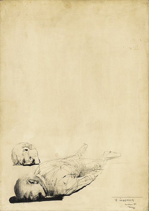 Σχέδιο με μελάνι σε χαρτί κολλημένο σε κόντρα πλακέ