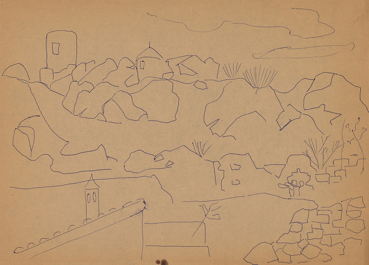 Σχέδιο με μπλε μελάνι σε ριζόχαρτο