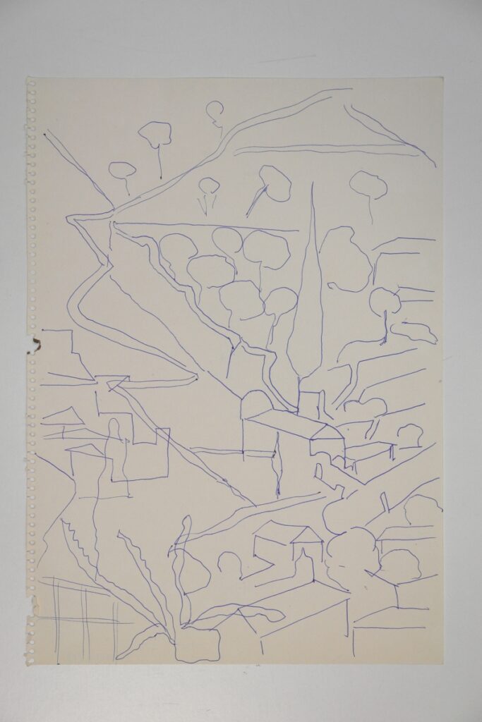 Σχέδιο με μπλε μελάνι σε χαρτί μπλοκ