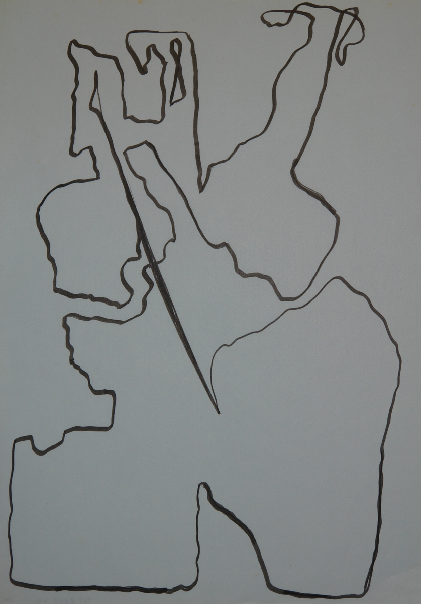 Σχέδιο με μελάνι σε γαλάζιο χαρτί