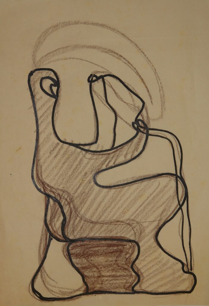 Σχέδιο με μαύρο μελάνι και καφέ παστέλ σε χαρτί